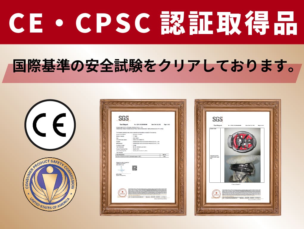世界最大級の試験・検査・認証機関SGSにて、CE認証・CPSC認証取得済みです。
