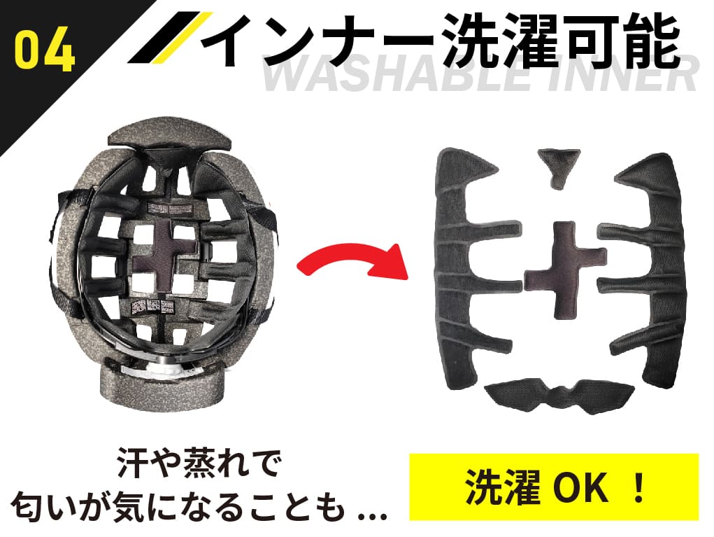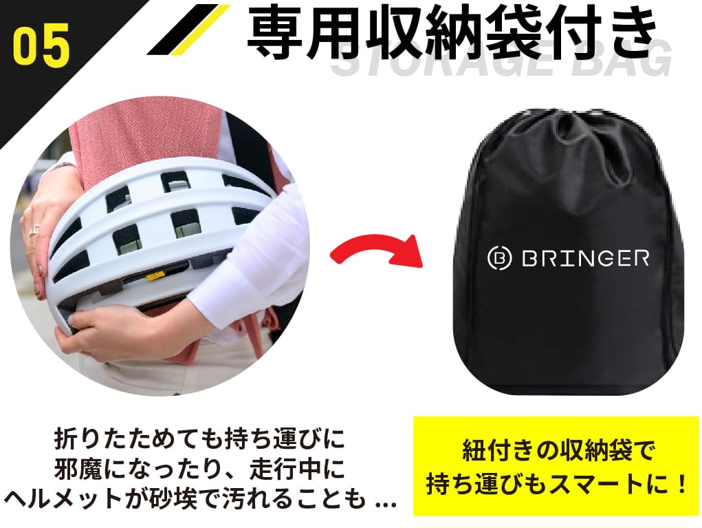 収納袋も付属しているので、通勤時にヘルメットをしまう時にも便利。
